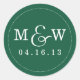 Rond Sticker Monogramme Mariage de charme Emerald Green