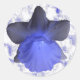 Ce joli jeu d'autocollants ronds fleuris présente une belle photo macro d'une Daffodil montrant ce plante dans de beaux détails après une douche à effet pluie. La fleur a été colorée artificiellement ce qui donne une Daffodile bleu moody avec des nuances de bleu et noir. L'arrière - plan y a un motif à feuilles blanches et bleues.