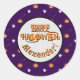 Cet autocollant éffrayant d'Halloween est décoré de citrouilles drôles, de fantômes, de chauves-souris et d'yeux effrayants sur un arrière - plan violet foncé imitant la nuit d'Halloween. Le message central est très drôle avec Halloween écrit en utilisant un citrouille. Nom du destinataire personnalisable. Parfait pour célébrer la saison d'Halloween !
