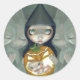 Une de mes grandes soeurs de sorcière aux yeux - très solennelle - avec son bébé magique né d'un citrouille! Oui ! Je ne sais pas exactement ce qui se passe dans ce tableau (je n'ai pas été au courant de cette cérémonie) mais il est à la fois mignon et mystérieux ! Ma propre peinture acrylique originale.