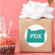 Cet autocollant sur mesure inclut le motif de tapis de l'aéroport de Portland qui couvre la couverture de l'état de l'Oregon et les lettres PDX.