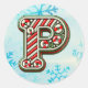 Rond Sticker "P" de Noël sucre de canne, Stripes festiv
