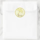 Un autocollant baby shower avec un arrière - plan jaune clair. L'illustration à l'intérieur d'un cadre en cercle beige surligné de marron se compose d'un parapluie marron et jaune avec un arc jaune sur la poignée. Texte Brown sur la zone jaune du parapluie : "Bébé." Le texte Brown en dessous dit "Baby shower". Recherchez les articles correspondants chez Jill's Paperie.