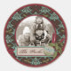 Impression Jacquard Fleur de lis avec étiquette de Noël 3D, bouton et garniture ruban.