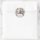 Arbres de Noël colorés et étiquette d'apparence 3D avec coordination aqua polka dot tricoter photo autocollant.