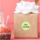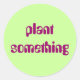 autocollant en cercle vert, texte rose foncé-violet : quelque chose de plante