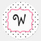 Un autocollant monogramme avec un arrière - plan de petits pois noirs sur blanc. Personnalisez avec votre premier cadre rose intérieur. Recherchez les articles correspondants chez Jill's Paperie.