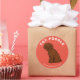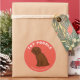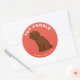 Sticker avec l'illustration d'un Jouet brun coupé en ours en peluche, assis sur un arrière - plan rouge rosâtre.