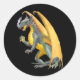 Un grand dragon à ailes qui respire le feu, tout droit sorti d'un bestiaire médiéval ou d'un conte de fées.