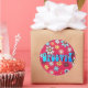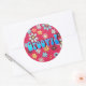 Autocollant rond avec le mot-clé "Super!" des années 60 sur une image vintage des années 60 de fleurs jaunes, bleues, orange et violettes sur le rouge. Voir sac de faveur, ballotin, étiquette de faveur et étiquette correspondant. Voir l'ensemble de la collection Psychedelic Sticker des années 60 dans les INVITATIONS | Section Stickers & Étiquettes.