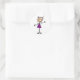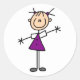 Autocollant personnalisable avec figurine en bâton dans une robe violette.