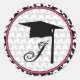 Un autocollant de graduation en pied de cheminée avec l'illustration d'un capuchon de graduation noir à l'intérieur d'un cadre rose chaud. Personnalisez avec votre initiale.