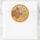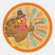 Autocollant amusant - parfait pour les cartes Thanksgiving, faveurs de fête, et plus encore! Dispose d'un arrière - plan coloré d'inspiration rétro avec une grande dinde portant un casquette de pèlerin et donnant deux pouces vers le haut, couplé avec le message inspirant "Si vous pouvez goballer jusqu'à ce que vous tourbillonnez, vous êtes béni!"
