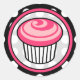 Un autocollant avec l'illustration d'un cupcake rose chaud entouré d'un cadre assorti. L'Arrière - plan est un pois blanc plutôt qu'un noir.