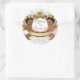Sticker pour le Baby shower de la Révélation Sexe Royal Africain Adorable Prince Africain portant une couronne d'or à côté d'une belle princesse africaine portant une couronne d'or sur un cadre fleuri doré élégant sur le dessus d'un arrière - plan en marbre doré et blanc. Une touche de finition pour une affaire royale ! Personnalisé avec la date de l'événement. ©Miss Sassy Designs