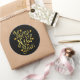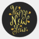 Autocollant rond avec une image de "Bonne Année" imprimé en or amusant lettrage sur noir. Voir les confettis assortis, le étiquette et le papier d'emballage. Voir la collection entière de Stickers du Nouvel An sous la catégorie CARDS & STICKERS dans la section VACANCES.
