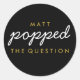 Appuyez sur la question Popcorn Welcome Bag Sticker en noir et or. Adhérer cet autocollant à un sac de pop-corn frais!