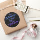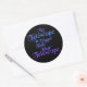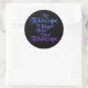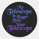 Un petit humour geek scientifique, autocollant noir avec "Mon télescope est plus grand que votre télescope" en bleu et violet.