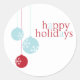 Ce sticker moderne de vacances frais et propre présente des ornements de vacances bleu et rouge glace.