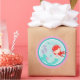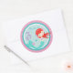 Douce sirène nageant avec un autocollant d'anniversaire de poissons.