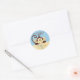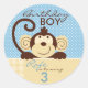Petit singe doux avec autocollant d'anniversaire rétro aux couleurs de points.
