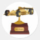 Un autocollant brillant de voiture de course en or, avec des graphiques d'une voiture de course en or sur une base de trophée, avec texte personnalisé, sur la plaque. Personnalisez le texte pour lire ce que vous voulez. Parfait comme fête d'anniversaire favorise ou récompense autocollants pour une course voiture thème de la fête d'anniversaire garçon.
