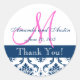 Carré, Monogramme rose, Étiquettes Merci bleu marine et blanc Mariage damassé. Mariage damassé Privilégie Les Stickers Merci. Présentation par Elke Clarke. Carte graphique sous licence. Vous avez besoin d'aide pour coordonner les articles "jour de" mariage pour votre mariage ? Veuillez contacter luxuryweddinginvitations@gmail.com