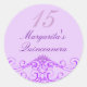 Cet élégant autocollant personnalisable Quinceanera présente une tiare violette & tourbillons sur un arrière - plan violet. Customisez-le en ajoutant vos détails dans la police de votre choix !