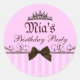 Cet autocollant d'anniversaire personnalisable moderne comporte une tiara & bow sur un arrière - plan rose. Customisez-le en ajoutant vos détails dans la police de votre choix !