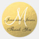 Sticker Gold Black Wedding Favor Sticker Initial Bride Groom Favor Sticker avec un message de remerciement. Entièrement personnalisable. Elke Clarke© pour MonogramGallery à Zazzle. Autres couleurs disponibles dans notre boutique. Effet photo imprimé de feuille d'or dans l'arrière - plan avec monogramme blanc et texte en script noir. Parfait pour un thème mariage noir et or.