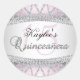 Rond Sticker Quinceanera en argent et diamants roses