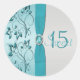 Rond Sticker Quinceanera Floral Aqua et Argent
