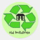 Recycler les flèches en cercle vert une image graphique d'un bâtiment de deux étages. Le texte "bâtiments anciens" est ci-dessous. Joindre au classeur, aux dossiers, à toute surface plane pour promouvoir la réutilisation de l'infrastructure existante.