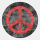 Colonne symbole de paix en gommage, rouge patiné et noir. Le style de ce design s'inspire de la résurgence des hippies grunges des années 90, les signes de paix des enfants de fleurs des années 60 originales avaient typiquement des couleurs plus vives et des lignes nettes.