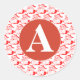 Rond Sticker RETRO ROUGE ET BLANC INITIAL PERSONNALISÉ