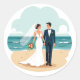 Comprend 20 petits autocollants sur une feuille. Élégant autocollant de dessin animé avec une mariée debout sur une plage de sable, parfait pour un décor mariage et des cadeaux d'anniversaire.