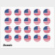 Sticker rond/drapeau américain. Disponible en 2 tailles Grandes : 3" de diamètre (6 par feuille) Petites : 1,5" de diamètre (20 par feuille) Impression de haute qualité, pleine couleur, à fond saigné Avant résistant aux rayures, dos facile à peler et à coller