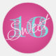Cet autocollant rose chaud, rose doux et bleu turquoise Sweet 16 correspond à l'invitation de fête d'anniversaire sweet sixteen présentée ci-dessous. La police décorative, tendance et de style vintage peut être enlevée et/ou changée en autre chose. Envoyez un courriel à niteowlstudio@gmail.com pour toute demande de modification.