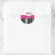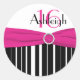 Rond Sticker rose, noir, blanc rayé 16e anniversaire