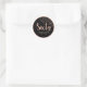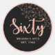 Personnalisé noir et rose or 60e anniversaire ronde fête faveur étiquette pour avec des motifs simples, simulé parties scintillant et écriture manuscrite. Customisé avec le nom, l'année de naissance/la date de naissance, ou des messages courts de votre propre nom.