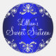 Rond Sticker Royal Blue Silver Pearl Damask Sweet 16