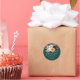 Un autocollant de remerciement rond avec des fleurs de saumons boho romantiques en bordeaux, ivoire, et pêche sur un arrière - plan vert émeraude profond. Parfait pour sceller des sacs de faveur ou des cartes de remerciement à votre réception de mariage. Une partie de la suite Rustic Emerald & Burgundy Floral. Pour obtenir de l'aide : bpkolman@gmail.com