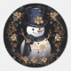 Rond Sticker Snowman Gold Flowers
