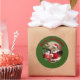 Mouse habillée en Père Noël Suit livre des paquets sous un arbre. Texte "joyeux Noël" en rouge avec une ombre noire sur un arrière - plan vert moyen. #générativecontent