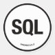 Sticker SQL, rond/mat. Design noir sur blanc.