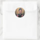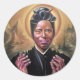 Sticker St. Josephine Bakhita C'est un détail d'une peinture captivante de St. Josephine Bakhita par Akaninyene Ubuo. St. Josephine Bakhita est né dans la région du Darfour au Soudan vers 1869. En 1877, elle a été enlevée par des marchands d'esclaves arabes et a enduré d'horribles souffrances. Elle a dû marcher pieds nus plus de 600 miles après son enlèvement, et a été achetée et vendue au moins 12 fois. Une fois, la femme de son propriétaire (un général turc) l'a volontairement effrayée en motif avec un rasoir et du sel. Elle a porté ces 114 cicatrices sur sa tombe. Après avoir passé du temps avec les soeurs canossiennes de Venise, elle a refusé de partir avec sa maîtresse actuelle, et a exigé de rester avec les Soeurs. Cela a conduit à la libération d'une coque, qui l'a déclarée libre, car l'esclavage était illégal au Soudan avant sa capture. Elle discerna un appel de Dieu pour rejoindre les soeurs canossiennes, et prit ses derniers voeux avec l'ordre religieux des Filles Canossiennes de la Charité le 8 décembre 1896. Elle a finalement été affectée à un couvent à Schio, à Vicence. Pendant les 42 années suivantes, elle a travaillé comme cuisinière et gardienne de porte. Elle était connue pour son sourire et sa nature douce. J'ai demandé à une artiste de peindre ceci exclusivement pour ce magasin Zazzle, car j'admire St. Joséphine pour sa joie malgré sa souffrance. J'ai appris sa vie en regardant un film intitulé "Bakhita : de l'esclave à Saint" qui m'a inspiré pour en savoir plus sur elle. Ses mains levées révèlent les cicatrices sur son bras droit, et en même temps indiquent la prière, la gratitude et la liberté. Saint Joséphine Bakhita, priez pour nous afin que nous trouvions la liberté en Jésus-Christ. Elle est la patronne du Soudan, ainsi que des victimes de la traite des êtres humains.