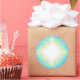 Un style rétro lumineux et ensoleillé éclate de rayons dans l'espace bleu, vert, jaune et blanc au centre, parfait pour tout texte personnalisé. Joints autocollants et étiquettes de vente au détail.