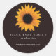 Une fleur de susan aux yeux noirs est silhouettée contre un noir riche sur cet autocollant polyvalent. Peut être utilisé pour un restaurant, un café ou un traiteur, des vêtements, un cadeau ou tout autre type de magasin de détail ou seulement pour un usage personnel. Il s'agit de scellés d'enveloppe, de pièces promotionnelles ou de sacs d'achat pour le client. Disponible avec des fleurs alternatives avec des produits assortis.