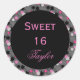Rond Sticker Sweet 16 rose et noir