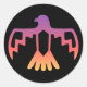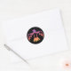 Autocollant noir avec tonneau stylisé aux couleurs de coucher de soleil orange, rouge et violet.